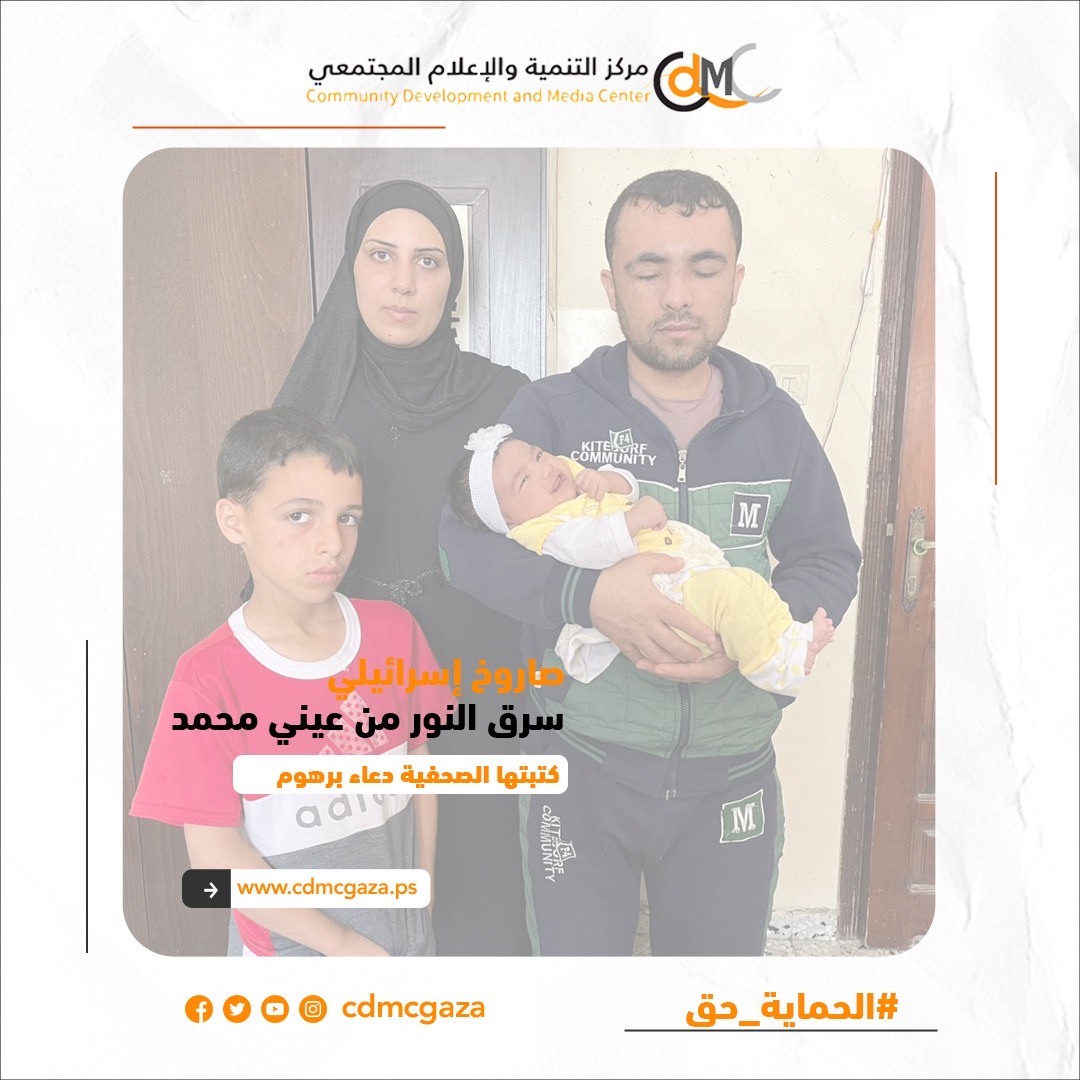 محمد الأب، سرق الاحتلال بصره، وحرمه حقّ التأمّل في ضحكات صغاره أحمد ومحمود، وسلبه حق تأمّل ملامح طفلته “سيلا” التي أبصرت النور قبل شهرٍ ونصف، يتحسس وجهها ويكاد يرسم في خياله صورة عن ملامحها الصغيرة، يتنهد بحسرة قائلًا: “نفسي أشوفها وهي بتكبر يوم بيوم”.