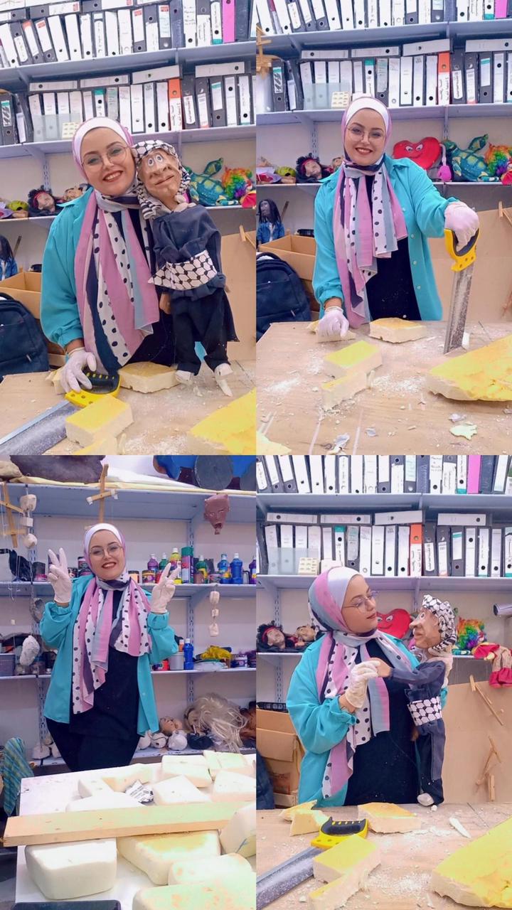 لا تحتمل حنين رؤية الأطفال حولها، وأبناء أخيها ليسوا بينهم، لقد كانوا ثمانية أحفاد، لكل شخص مكانة خاصة في قلبها، وكلما رأتهم أوجعها الشوق لمن تحت التراب، فوجدت ضالتها في مشاركة أعمال تطوعية كرسم الجداريات وتوزيع المواد الغذائية، فهي ناشطة عملت قبل الحرب ضمن فريق تحريك وصناعة الدمى (الماريونيت)، الذي ينفذ سلسلة من العروض المسرحية للأطفال مع مركز التنمية والإعلام المجتمعي.