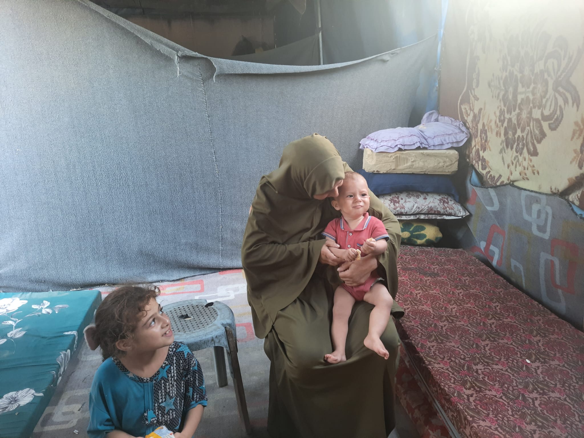 نورهان (23 عامًا)، ابنة أم محمد، متزوجة ولديها ثلاثة أطفال، زياد (8) سنوات، محمد (3) سنوات، ورتيل (عام واحد)، تقيم مع والدتها في ذات الخيمة.