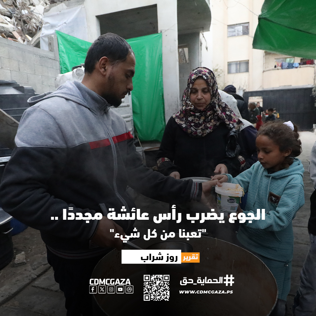 بهذه الكلمات، بدأت السيدة عائشة الدسوقي (58 عامًا) حديثها واصفة تجدد معاناتها مع شبح المجاعة الذي ضرب قطاع غزة منذ مطلع مارس 2025م، بعدما اعتقدت أن هذه المأساة ولّت إلى غيرِ رجعة، ثم تشير إلى زوايا خيمة قماشية تعيش فيها مع أسرتها المكوّنة من (11) فردًا، وتكمل: “لم يكتفِ الاحتلال بفرض التجويع علينا، بل دمّر بيتنا ولم يترك لنا أي شيء جميل”.