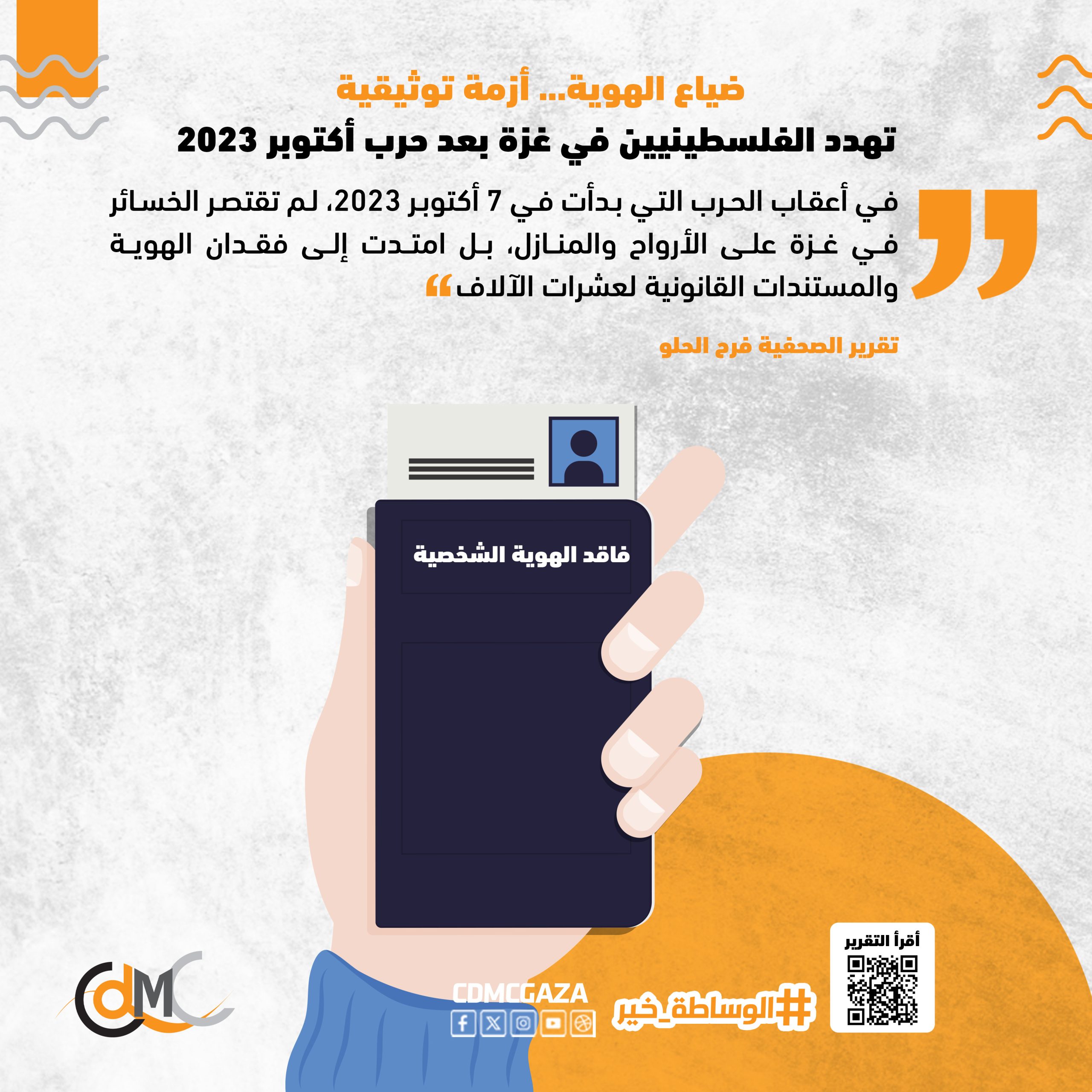 في أعقاب الحرب التي بدأت في 7 أكتوبر 2023، لم تقتصر الخسائر في غزة على الأرواح والمنازل، بل امتدت إلى فقدان الهوية والمستندات القانونية لعشرات الآلاف, الآلاف فقدوا شهادات الميلاد، بطاقات الهوية، وثائق الزواج والطلاق، وثائق الملكية، الأحكام القضائية، وسجلات الأنساب والميراث والولاية والحضانة … الخ ، مما زاد من هشاشة أوضاعهم في ظل غياب مؤسسات الدولة وتوقف عمل المحاكم والوزارات.