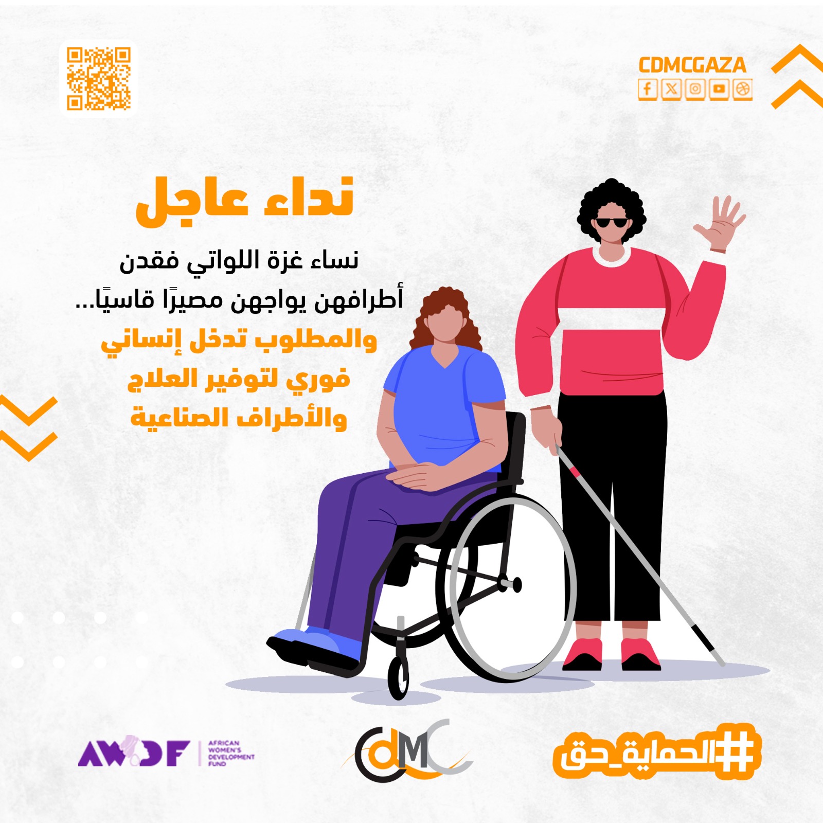 يطلق مركز التنمية والإعلام المجتمعي نداءً إنسانيًا عاجلًا إلى المجتمع الدولي، ووكالات الإغاثة الإنسانية، والمنظمات الحقوقية الدولية، للتحرك الفوري من أجل تلبية الاحتياجات الصحية والإنسانية العاجلة للنساء والفتيات اللواتي فقدن أطرافهن نتيجة العدوان الإسرائيلي المستمر على قطاع غزة، في ظل واقع طبي وإنساني يزداد سوءًا يومًا بعد يوم.