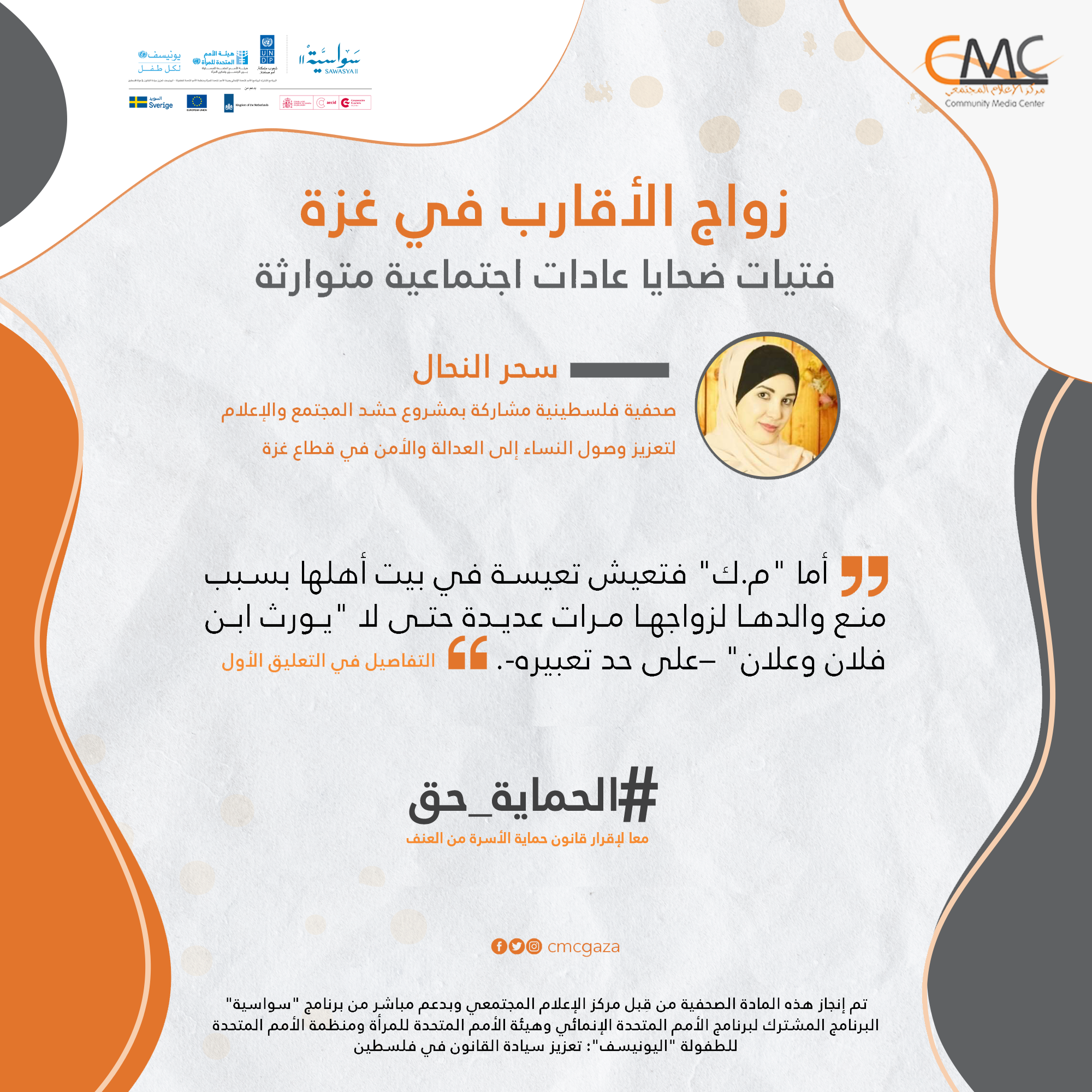 تم إنجاز هذه المادة الصحفية من قبل مركز الإعلام المجتمعي، وبدعم مباشر من برنامج “سواسية” البرنامج المشترك لبرنامج الأمم المتحدة الإنمائي وهيئة الأمم المتحدة للمرأة ومنظمة الأمم المتحدة للطفولة “اليونيسيف”: تعزيز سيادة قانون في فلسطين.