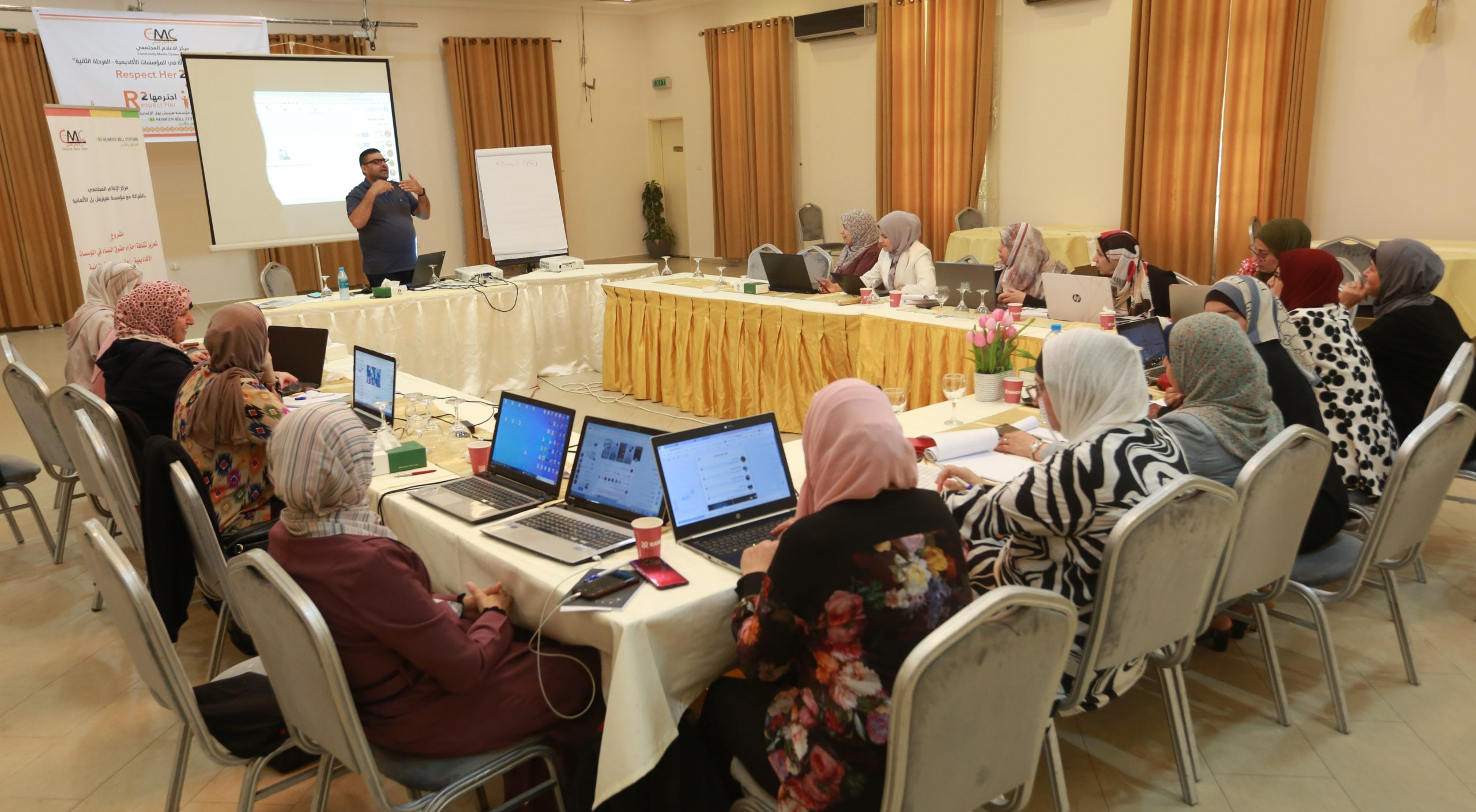 وقد اختتم مركز الإعلام المجتمعي CMC، تدريب تطوير قدرات الأكاديميات حول مهارات التشبيك والتسويق الرقمي، بمشاركة 19 أكاديمية من عضوات هيئة الأكاديميات الفلسطينيات PAC، وذلك ضمن أنشطة مشروع “تعزيز ثقافة احترام حقوق المرأة في المؤسسات الأكاديمية – احترمها″، الذي ينفذه CMC للعام الثاني على التوالي بالشراكة مع مؤسسة هينرش بل الألمانية.