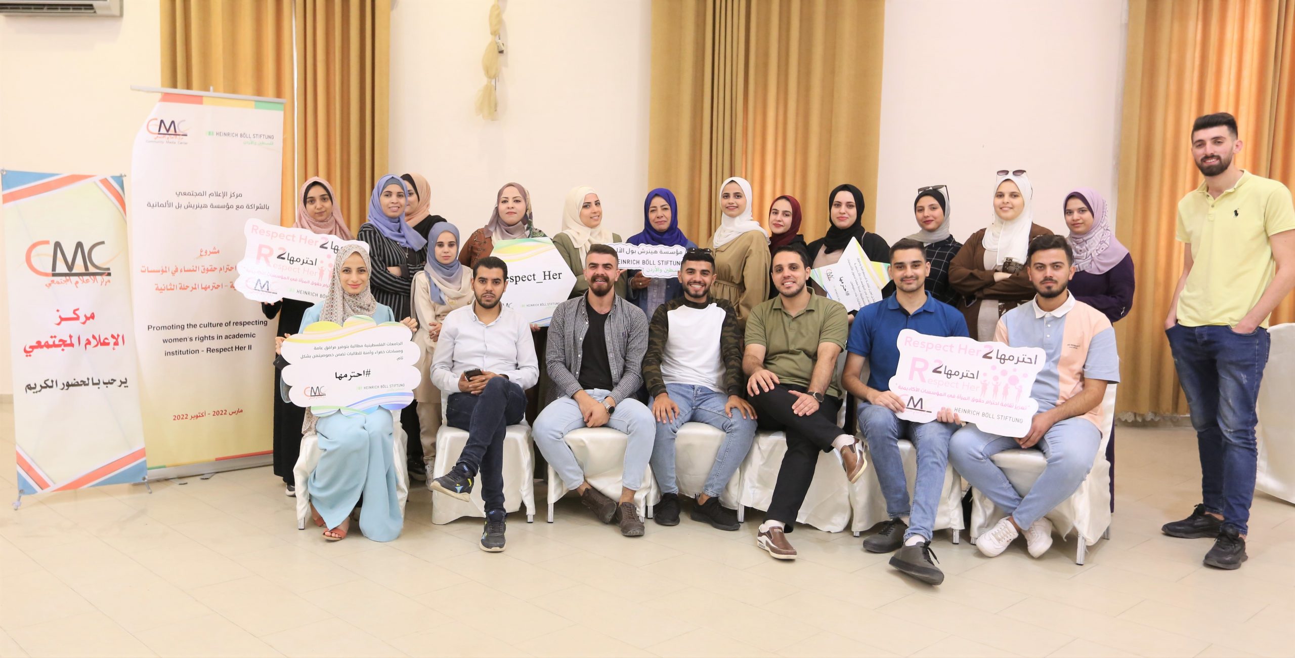 نظم مركز الإعلام المجتمعي (CMC) حملة رقمية لمناصرة حقوق المرأة في المؤسسات الأكاديمية، والتوعية حولها، بمشاركة سفراء وسفيرات حقوق المرأة لدى مركز الإعلام المجتمعي، وثلة من الأكاديميات عضوات هيئة الأكاديميات الفلسطينيات PAC، وعدد من الإعلاميين/ات والناشطين/ات. وقد جاء ذلك ضمن أنشطة المرحلة الثانية من مشروع “تعزيز ثقافة احترام حقوق المرأة في المؤسسات الأكاديمية – احترمها” الذي ينفذه CMC بالشراكة مع مؤسسة هينرش بل الألمانية.