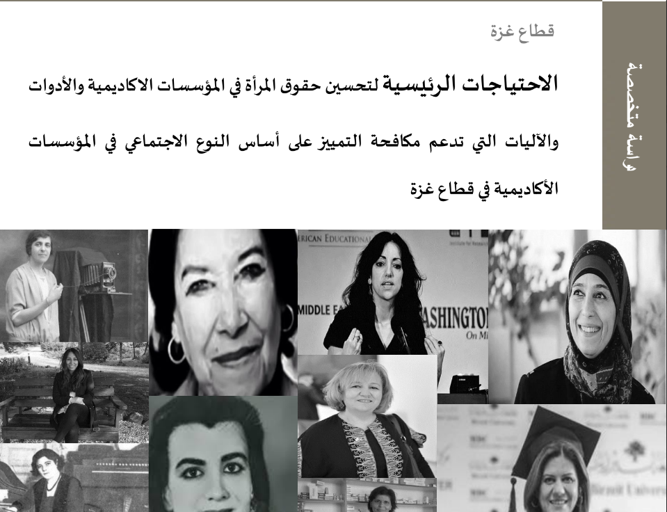 دراسة الاحتياجات الأساسية لتحسين حقوق المرأة في المؤسسات الأكاديمية والأدوات والآليات التي تدعم مكافحة التمييز على أساس النوع الاجتماعي في المؤسسات الأكاديمية في قطاع غزة